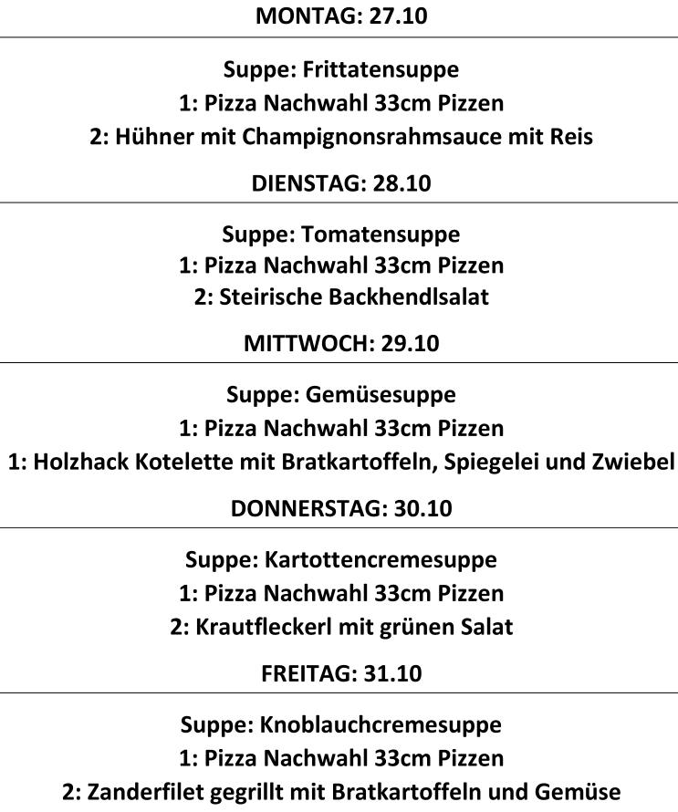 Montag bis Freitag von 11:00 bis 15:00 Ihr Tagesmenü mit Suppe ab 10,90€